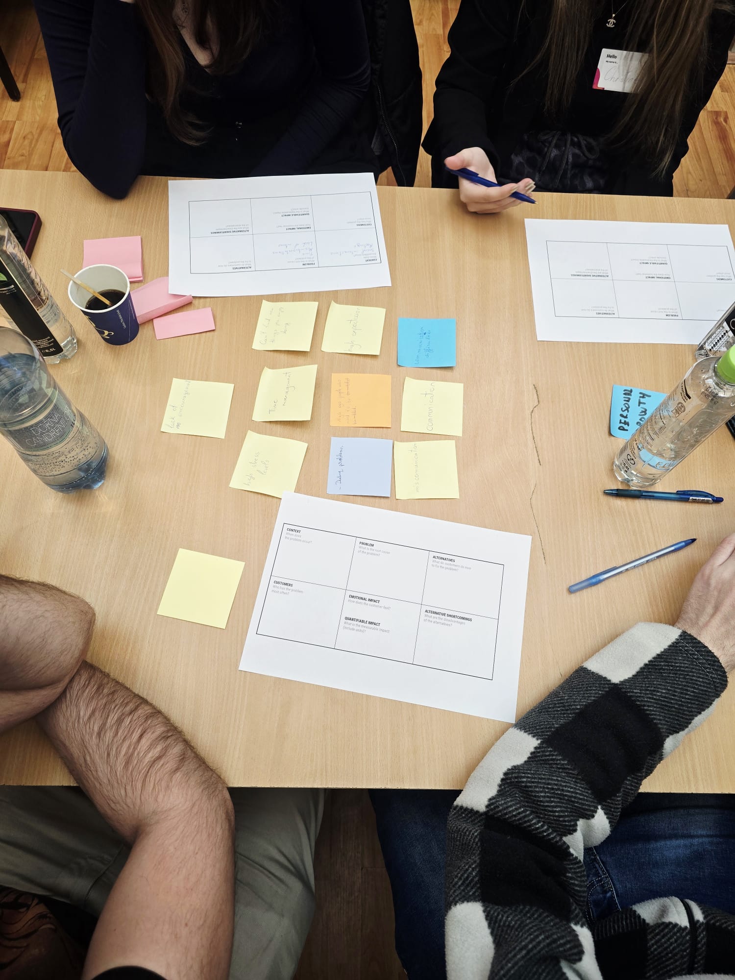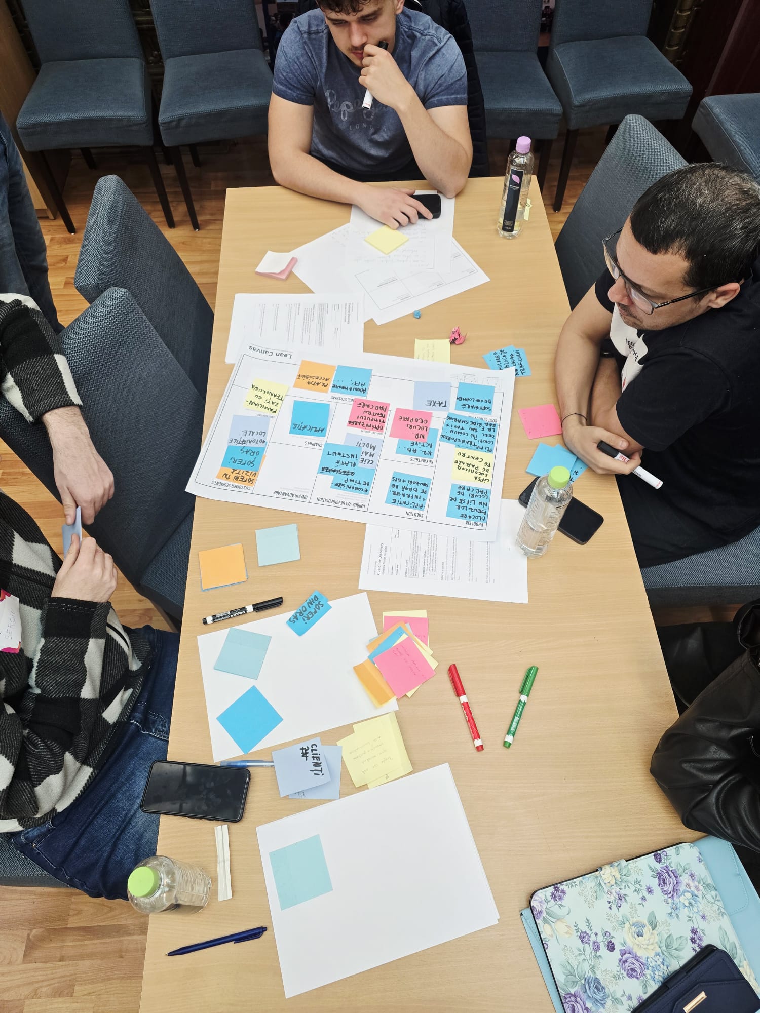 Timp de două zile intense (18–19 aprilie), am lucrat alături de studenți motivați care nu au venit doar să asculte, ci să construiască. Am explorat împreună cum identificăm probleme reale, cum validăm dacă merită rezolvate și cum transformăm o idee inițială într-un concept clar, cu potențial de dezvoltare.