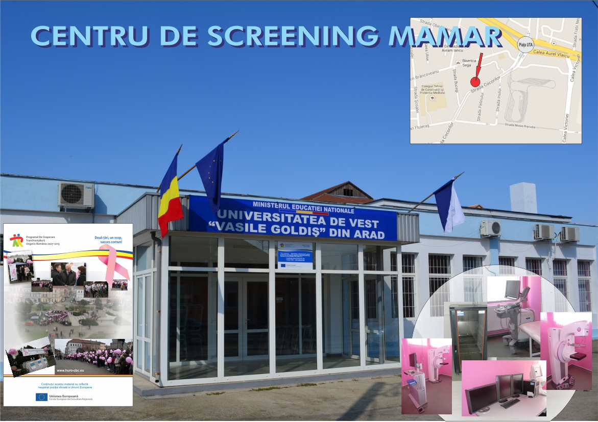 Universitatea de Vest „Vasile Goldiş” din Arad a amenajat, din fonduri proprii, o locație modernă pe strada Cocorilor nr. 57 din municipiul Arad, pentru instalarea aparaturii achiziționate, înființând „CENTRUL DE SCREENING MAMAR”.