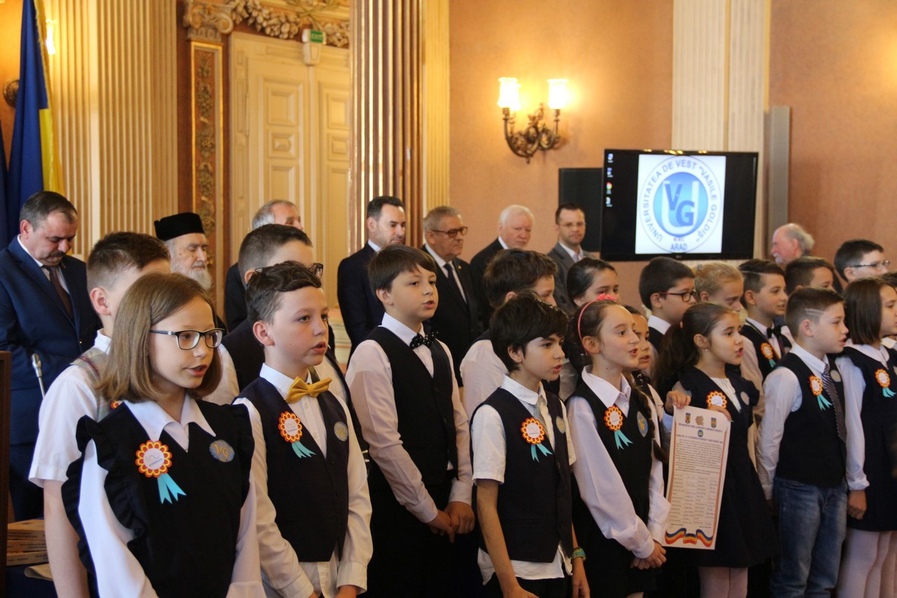 În numele Conducerii şi al Senatului Universitar, prof. univ. dr. Aurel Ardelean, preşedintele UVVG, le-a acordat Placheta de Aur a Universităţii de Vest „Vasile Goldiş”, principalilor participanţi la congres.