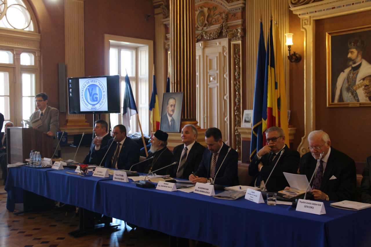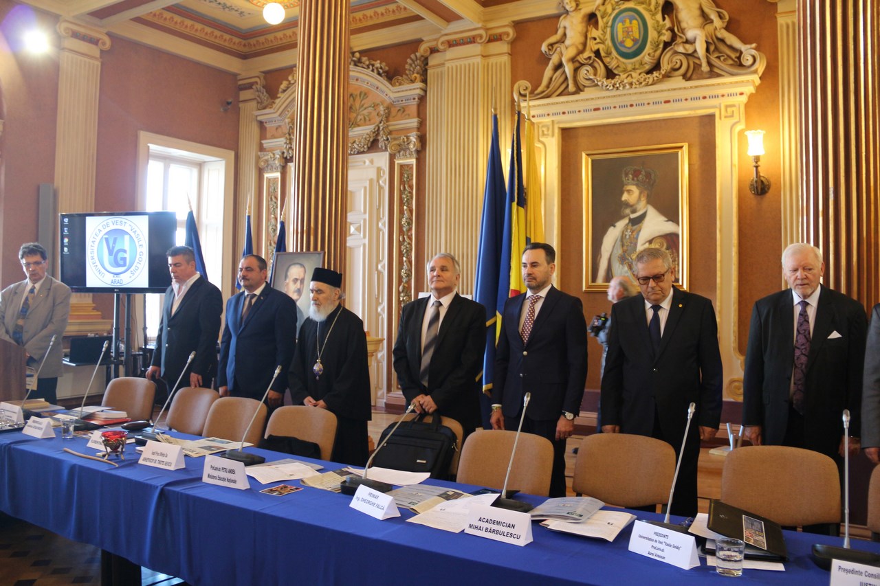 Prof. univ. dr. Aurel Ardelean, preşedintele Universităţii de Vest „Vasile Goldiş”, a transmis salutul doamnei prof. univ. dr. Coralia Adina Cotoraci, rectorul Universităţii şi a subliniat rolul pe care Corifeii – Vasile Goldiş, Ştefan Cicio Pop şi Ioan Suciu l-au avut în realizarea Marii Uniri de la 1 Decembrie 1918, precum şi activitatea lui Vasile Goldiş în calitate de Preşedinte al ASTREI.