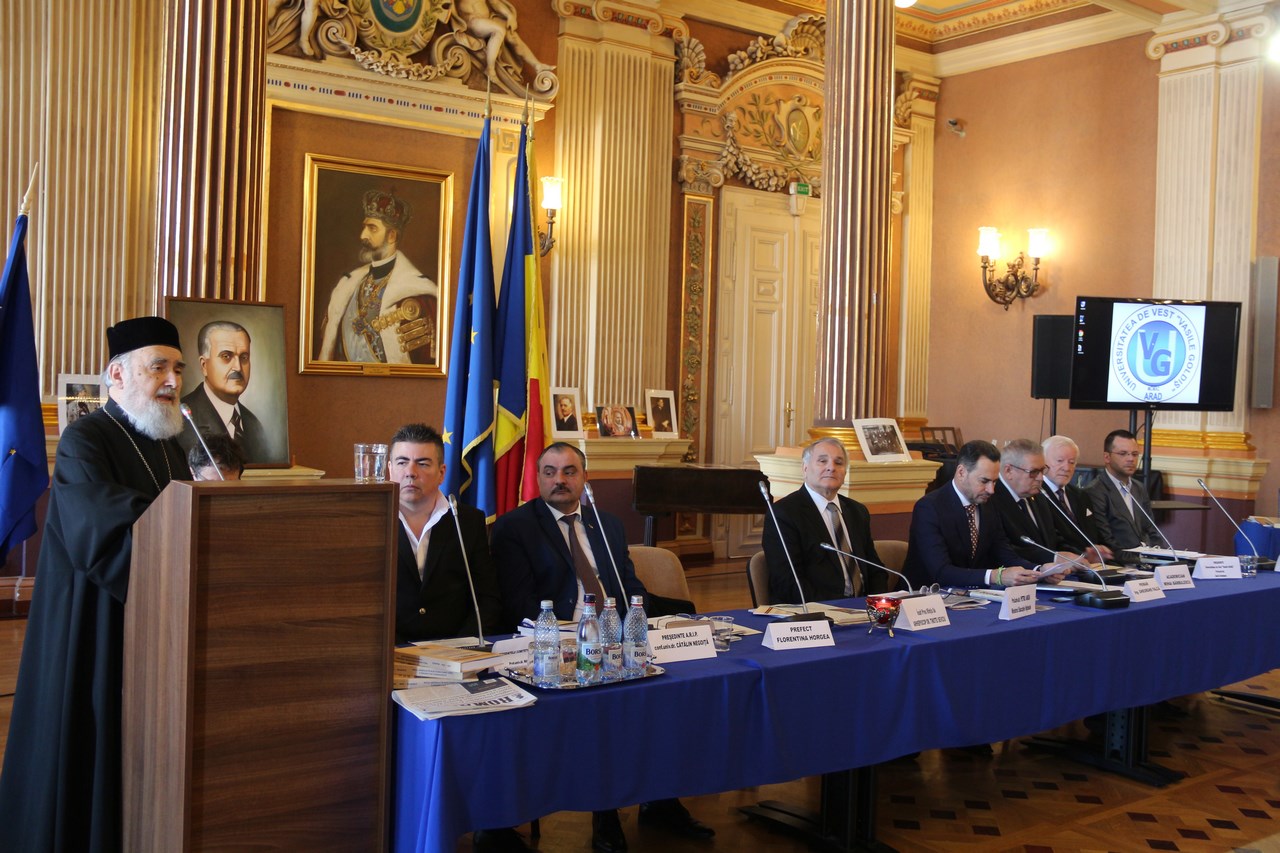 Prof. univ. dr. Aurel Ardelean, preşedintele UVVG, a subliniat: „Zi de sărbătoare a comunității academice a Universităţii de Vest „Vasile Goldiş”, a Fundaţiei Universitare „Vasile Goldiş”. Am găzduit, împreună cu colaboratorii noştri, acest congres extrem de important al presei. Este prima acţiune a Centenarului deschisă internaţionalizării, o acţiune pe care ne-o dorim cu toţii, fiindcă este vorba despre presa Marii Uniri, care a avut un rol determinat pentru declanşarea evenimentelor care au dus la unificarea României, pentru a realiza cel mai mare act din istoria postmodernă a ţării, unificarea provinciilor româneşti într-un stat unitar. Subliniez acest lucru, statul unitar, care a deschis drumul României spre Uniunea Europeană de astăzi. Am desfăşurat această importantă manifestare literară, culturală şi ştiinţifică la cei mai buni parametri, astfel încât întreaga ţară să cunoască rolul pe care presa l-a avut în declanşarea evenimentelor importante ale actului Marii Uniri, deoarece aici, la Arad, au avut loc evenimentele de bază. De aici s-au declanşat ideile Marii Uniri, prin corifeii Unirii, Vasile Goldiş, Ştefan Cicio Pop, Ioan Suciu, Ioan Fluieraş şi ceilalţi, care au pus bazele ideologiei Marii Uniri. Aradul a fost, în esenţă, prima capitală politică a Marii Uniri. Incontestabil, de la noi, de la Arad, a pornit flacăra Marii Uniri. Astăzi, utilizăm tripticul Arad – Alba Iulia – Bucureşti, fiindcă toate cele trei capital deopotrivă au fost implicate în actul Marii Uniri. Oraşul nostru, în care muncim şi trăim, are o Universitate pe care Vasile Goldiş şi-a dorit-o în Transilvania, în limba română. Nu a reuşit, dar noi am tradus în fapte testamentul pe care l-a lăsat Vasile Goldiş, acela de a avea o Universitate la Arad”.