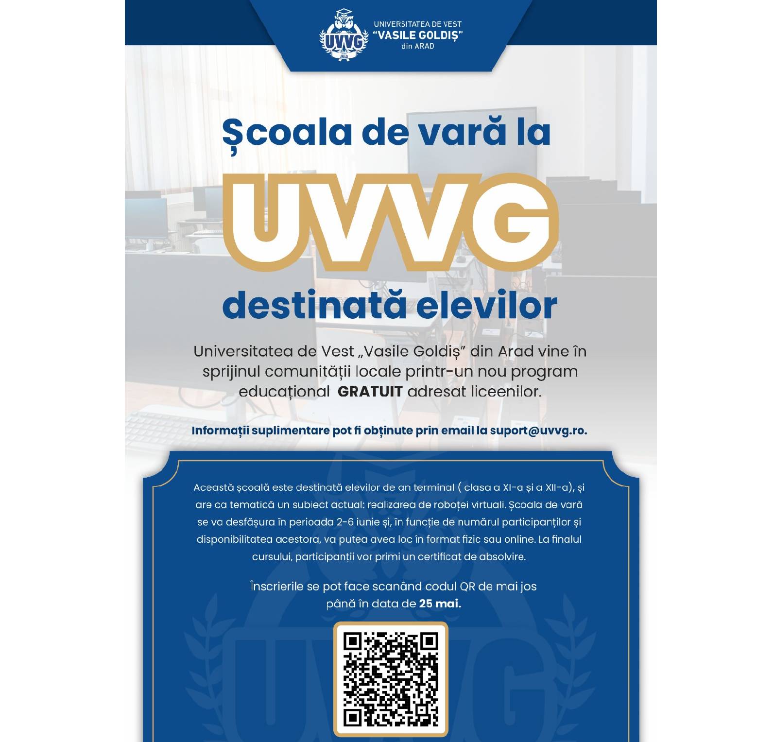 Universitatea de Vest „Vasile Goldiș” din Arad vine în sprijinul comunității locale printr-un nou program educațional GRATUIT adresat liceenilor. Este [...]