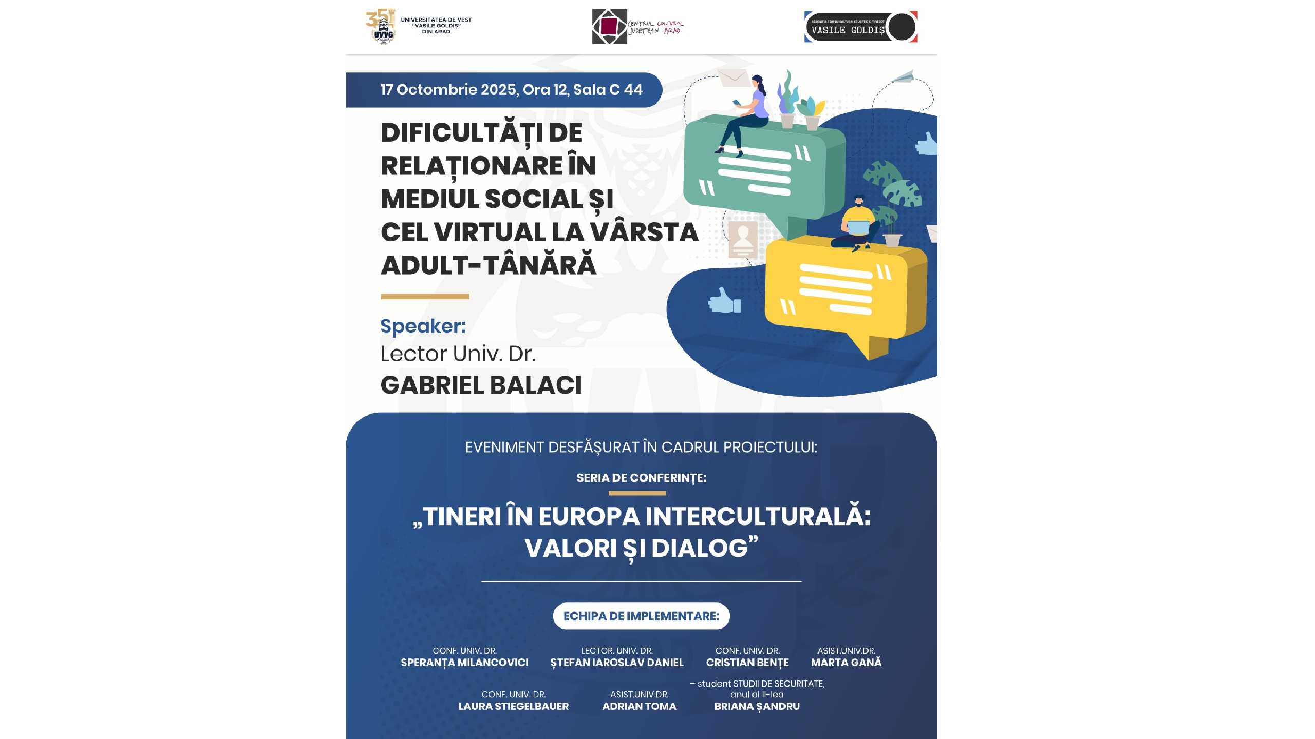 În data de 17 octombrie, de la ora 12:00, la Universitatea de Vest „Vasile Goldiș” din Arad, în cadrul campusului [...]