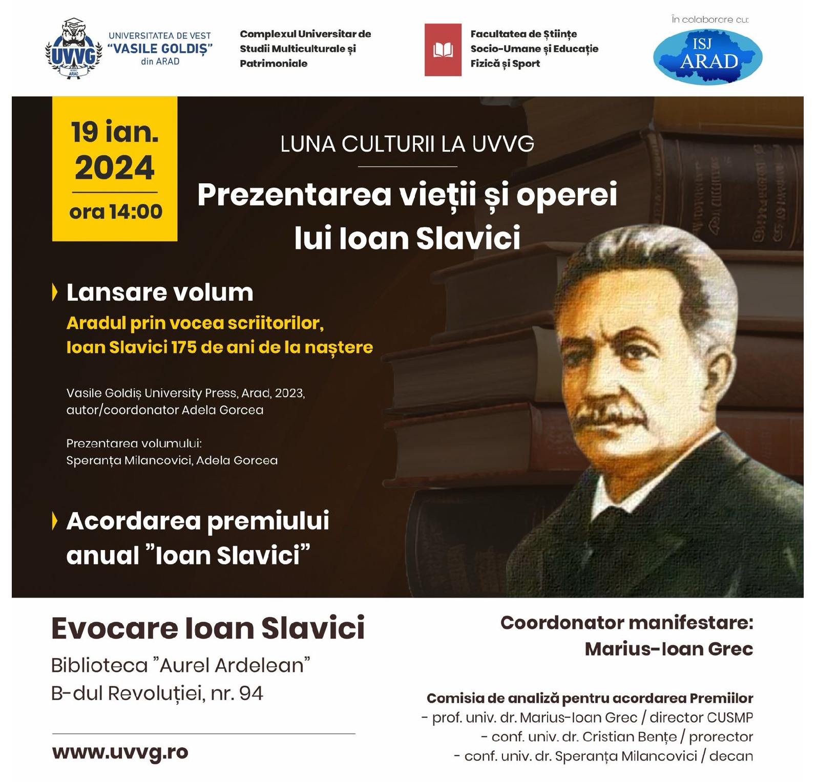 IOAN SLAVICI Manifestările dedicate Lunii Culturii, la Universitatea de Vest „Vasile Goldiș" din Arad, continuă. În ziua de 19 [...]
