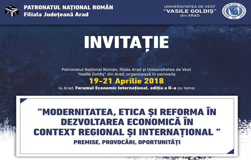 În perioada 19-21 aprilie 2018, la Consiliul Județean Arad, sala Vasile Godiș, se va desfășura a doua ediție a Forumului [...]