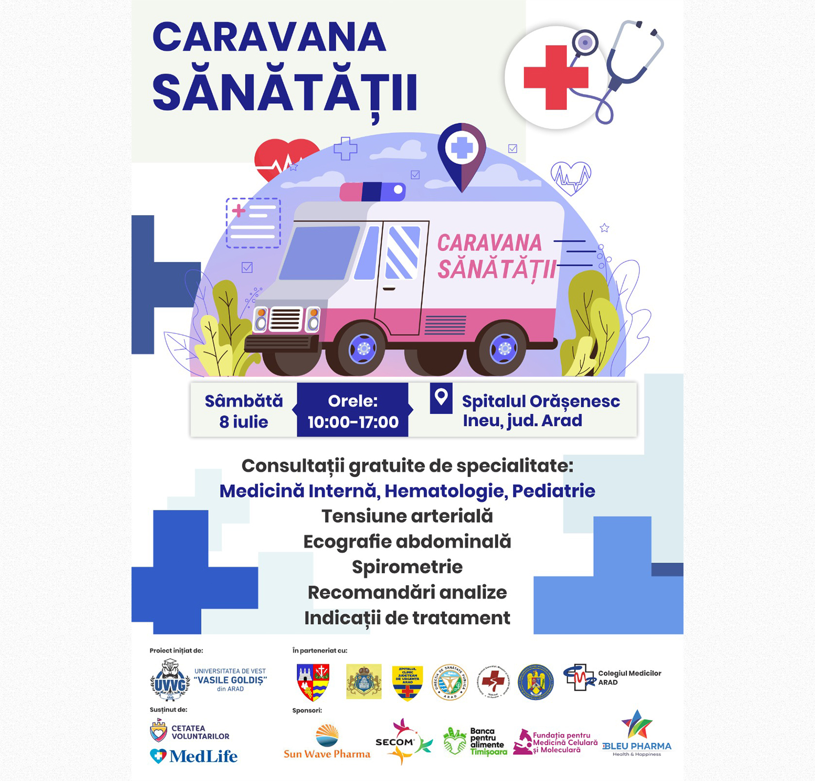 Sâmbătă, 8 iulie 2023, între orele 10:00-17:00, Caravana Sănătății va poposi la Ineu, unde se vor acorda consultații medicale de [...]