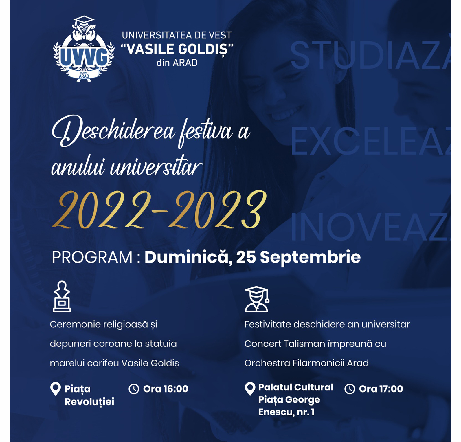 Ceremonia de deschidere a anului universitar 2022 - 2023 a Universității de Vest „Vasile Goldiș” va avea loc duminică, 25 [...]