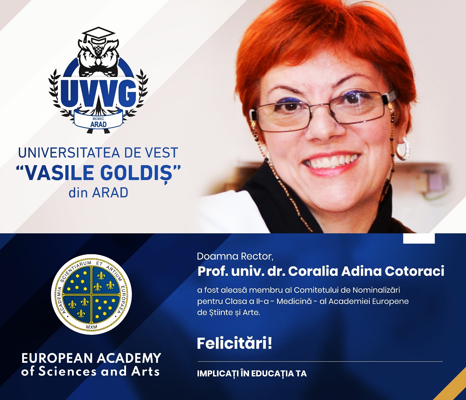 Prof. univ. dr. Coralia Adina Cotoraci, Rector al Universităţii de Vest „Vasile Goldiş” din Arad a fost aleasă membru al [...]