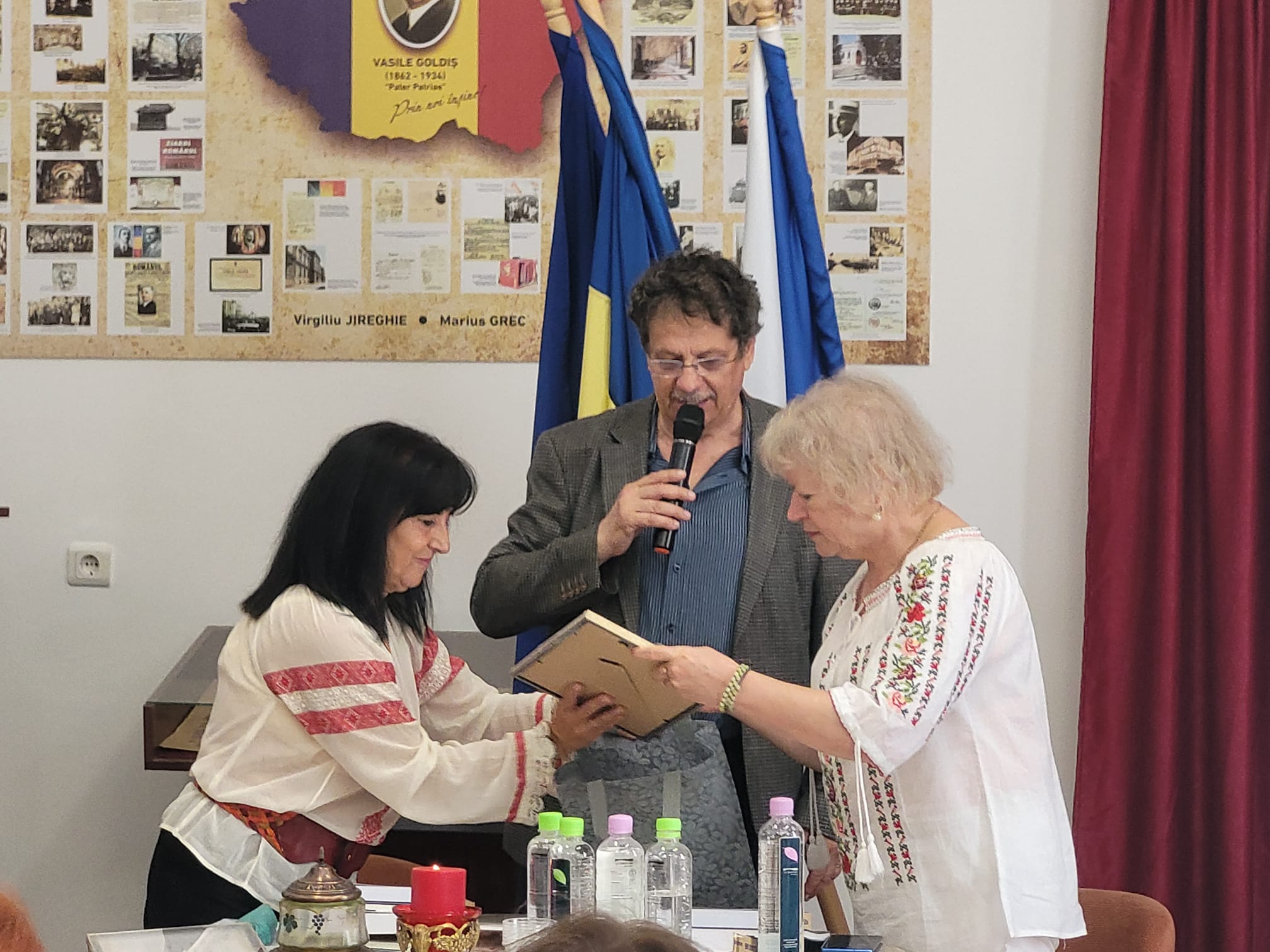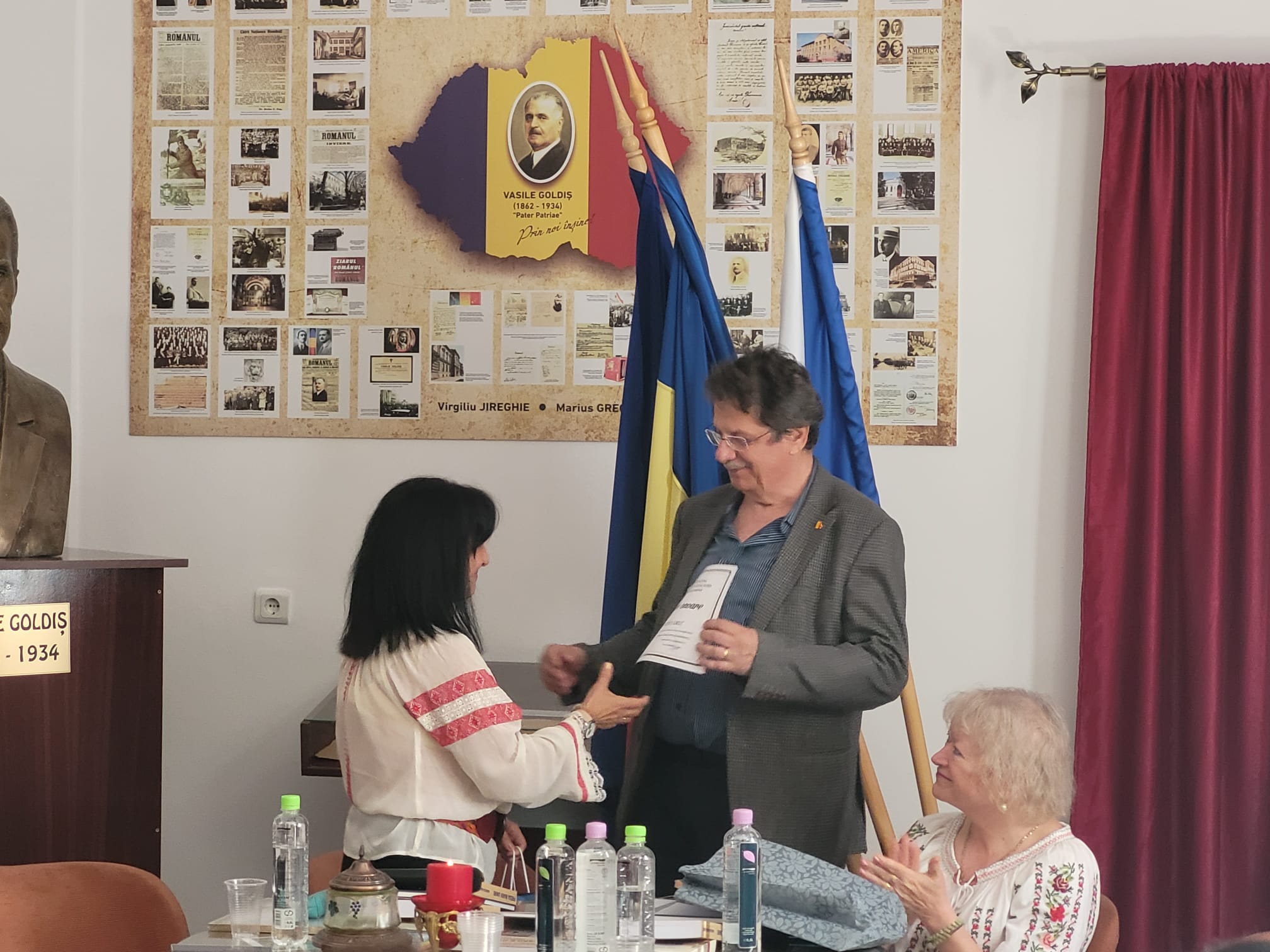 De asemenea, prof. Marius Grec, directorul Muzeului „Vasile Goldiș”, moderatorul evenimentului, le-a oferit oaspeților prezentări legate de însemnătatea sălii Unirii în care s-a oficializat încheierea parteneriatului și despre istoria Aradului prin prisma aportului adus de Vasile Goldiș. Domnia sa a primit din partea BPW Arad o diplomă de onoare, ca semn al recunoștinței pentru sprijinul oferit clubului femeilor de-a lungul timpului.