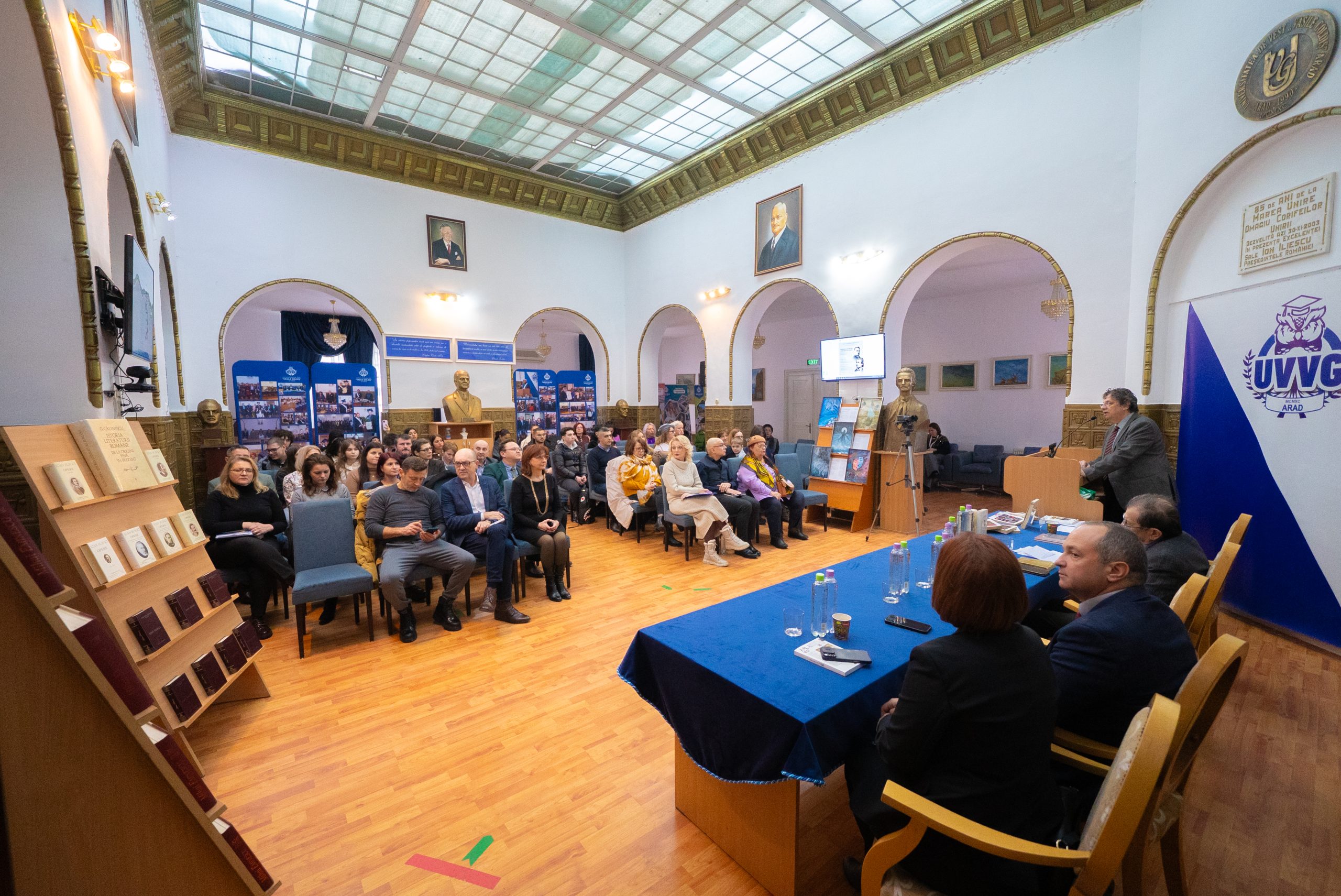 Au participat membri ai conducerii Universității de Vest „Vasile Goldiș” din Arad, în frunte cu rectorul UVVG, prof. univ. dr. habil. Coralia Adina Cotoraci, cadre didactice, studenți, elevi și invitați din mediul cultural și administrativ arădean.