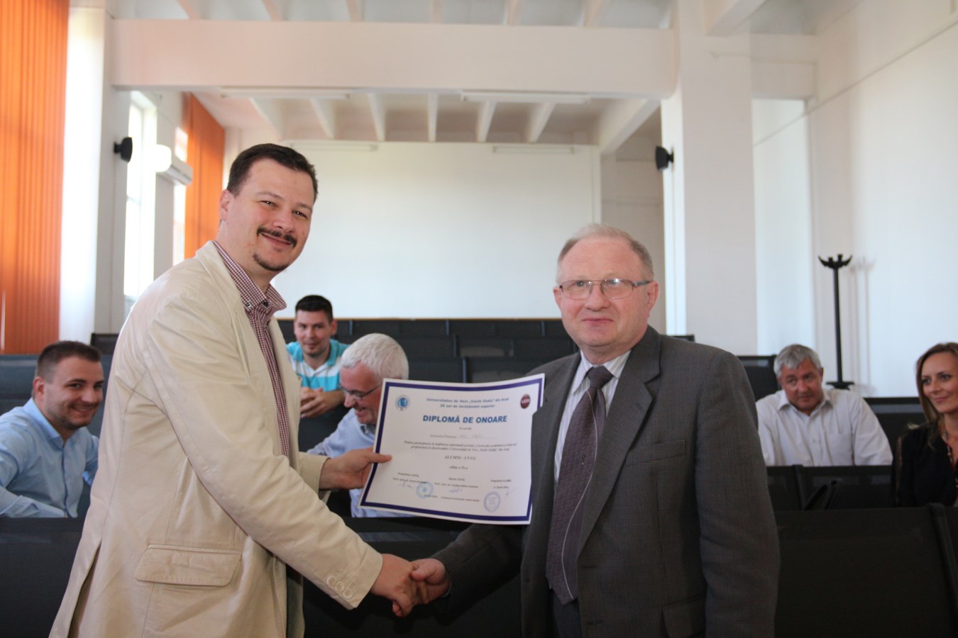 La eveniment au participat absolvenţi ai Universităţii de Vest „Vasile Goldiş” din Arad, din domeniile medicină, ştiinţe juridice, ştiinţele umaniste, ştiinţe economice, cadre didactice actuale şi foşti profesori. Conducerea Universităţii de Vest „Vasile Goldiş” a fost reprezentată de șef lucrări dr. Casiana Stănescu, prodecan al Facultății de Medicină și de prof. univ. dr. Aurel Darău, prorector al UVVG, care a transmis mesajul conducerii Universităţii – prof. univ. dr. Coralia Adina Cotoraci, rectorul UVVG şi prof. univ. dr. Aurel Ardelean, preşedintele Universităţii.