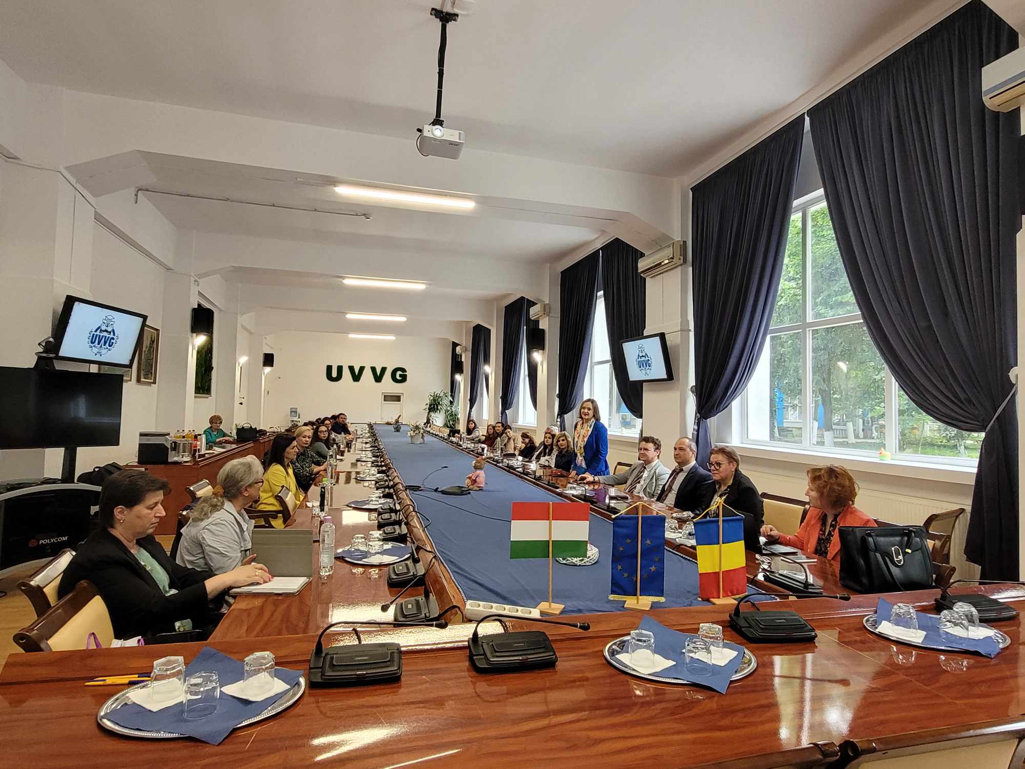 Oaspeții maghiari au fost primiți de rectorul Universității de Vest „Vasile Goldiș” din Arad prof. univ. dr. habil. Coralia Adina Cotoraci și de întreaga conducere a instituției de învățământ superior.