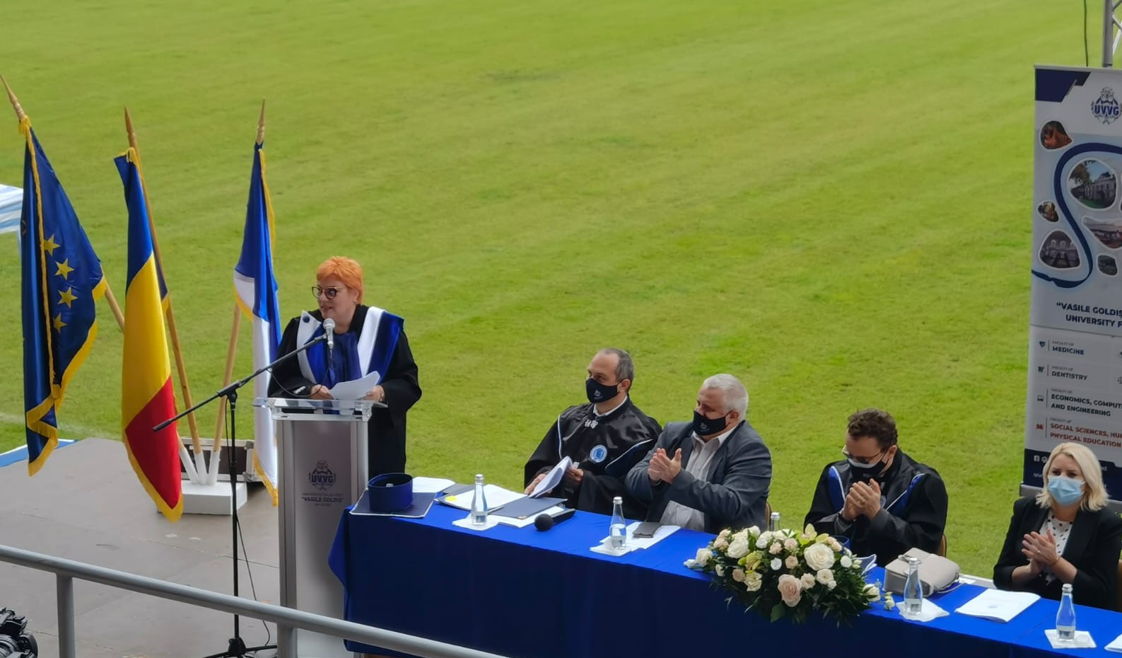 Alegerea stadionului „Francisc Neuman” – locul unde UTA a scris pagini de istorie pentru Arad – ca loc de desfăşurare a festivităţii de deschidere a anului academic 2021-2022 a fost una inspirată. Cum bine a punctat prefectul judeţului, Csaba Toth: „Un brand precum UVVG nu putea să aibă o alegere mai potrivită decât să îşi dea întâlnire pe locul unde îşi desfăşoară activitatea un alt brand al Aradului, UTA”.
