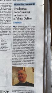 Maine, 31 ianuarie 2020, în Sala Ferdinand a Primăriei Arad, în prezența autoritătilor locale și a Excelenței Sale Primarul din Cassino, Italia, Universitatea de Vest „Vasile Goldiș” va oferi titlul Doctor Honoris Causa domnului Donato Ogliari, Abate ordinario di Montecassino.