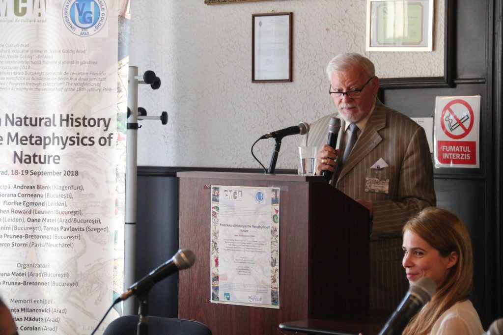 Universitatea de Vest „Vasile Goldiș” din Arad a găzduit, în perioada 17-19 septembrie a.c., lucrările conferinței „De la istorie naturală la metafizica naturii” – From Natural History to Metaphysics of Nature, care s-a bucurat de prezența unor reputați cercetători de la universități prestigioase din Europa, dintre care amintim: Andreas Blank (Klagenfurt), Sorana Corneanu (București), Florike Egmond (Leiden), Stephen Howard (Leuven), Peter Mason (Leiden), Alessandro Nannini (București), Tamas Pavlovits (Szeged), Tinca Prunea-Bretonnet (București), Marco Storni (Paris/Neuchâtel).