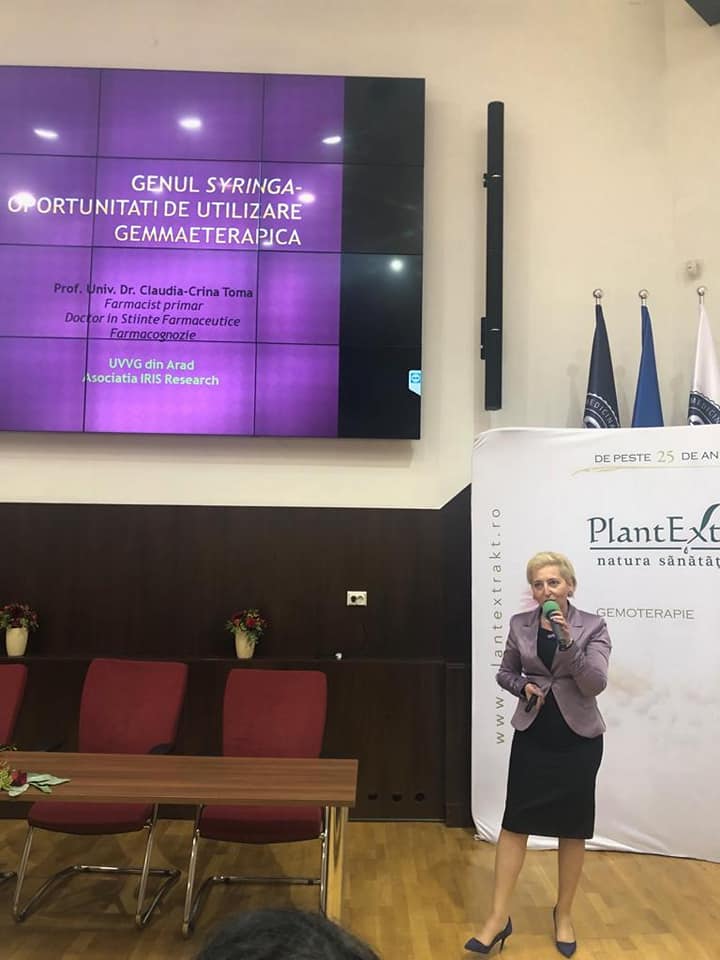 În plenul Conferinței de Gemoterapie de la Cluj-Napoca a fost prezentată de către Prof. Univ. Dr. Claudia-Crina Toma, Directorul Școlii de Primăvară de Gemmaeterapie creată si desfașurată anual la Arad din anul 2015 în cadrul UVVG, o conferință asupra medicației fitoterapice dedicate sistemului cardiovascular. Cu această ocazie a fost anunțată noua formulă a Școlii de Gemmaeterapie de la Arad, care se va desfasura în perioada 26-30 septembrie 2019, reformulată anul acesta si dedicată memoriei rectorului fondator al UVVG – Prof. Univ. Dr. Aurel Ardelean, biolog si distins om de știință, apropiat sufletește și științific al Școlii de Farmacie de la Arad. Tema Școlii de Gemmaeterapie susținută de conducerea UVVG Arad este aceea a Gemmaeterapicelor dedicate femeii, avându-l ca lector principal pe medicul italian Fernando Pitera di Clima, medic si filozof din Genova.