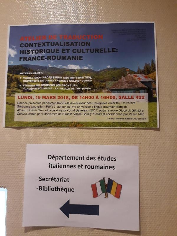 În cadrul parteneriatului științific dintre Universitatea de Vest „Vasile Goldiş” din Arad şi Universitatea Sorbona Nouvelle – Paris 3 o delegaţie a UVVG, a participat, zilele trecute, la Paris, la o manifestare ştiinţifică dedicată Centenarului Marii Uniri – „România Centenară: Traduceri-contextualizare istorică şi culturală Franţa-România”.