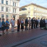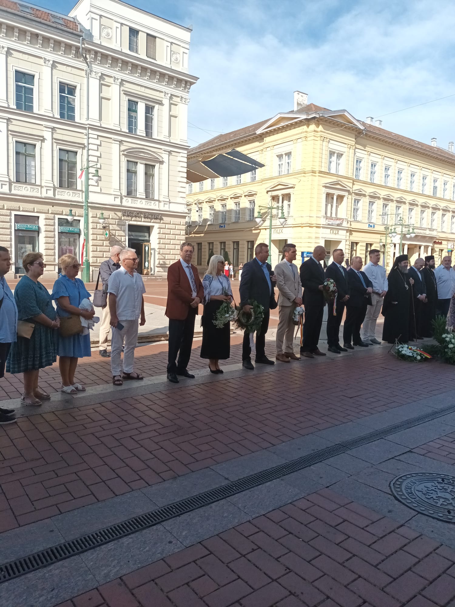 S-au depus coroane de flori din partea Primăriei Seghedin, Consulatelor Generale ale României la Seghedin şi Jula (Gyula); Autoguvernării pe Ţară a Românilor din Ungaria (AŢRU); Autoguvernării Românești din Seghedin; Asociaţiei Culturale a Românilor din Seghedin; Universității de Vest ”Vasile Goldiș” din Arad.