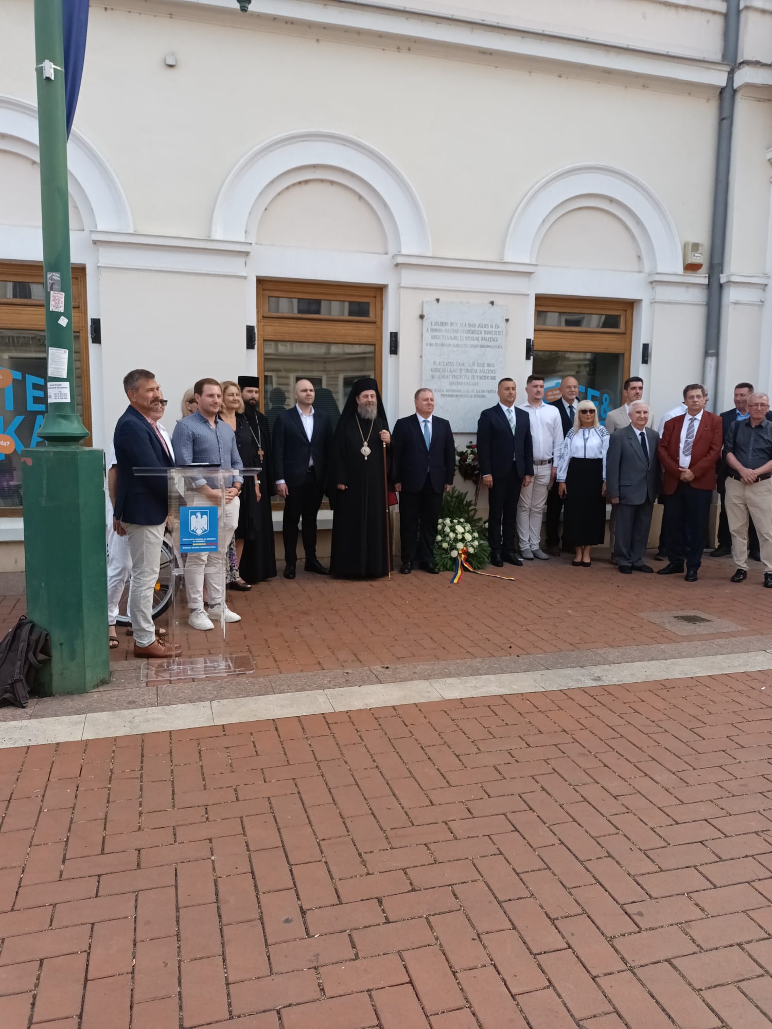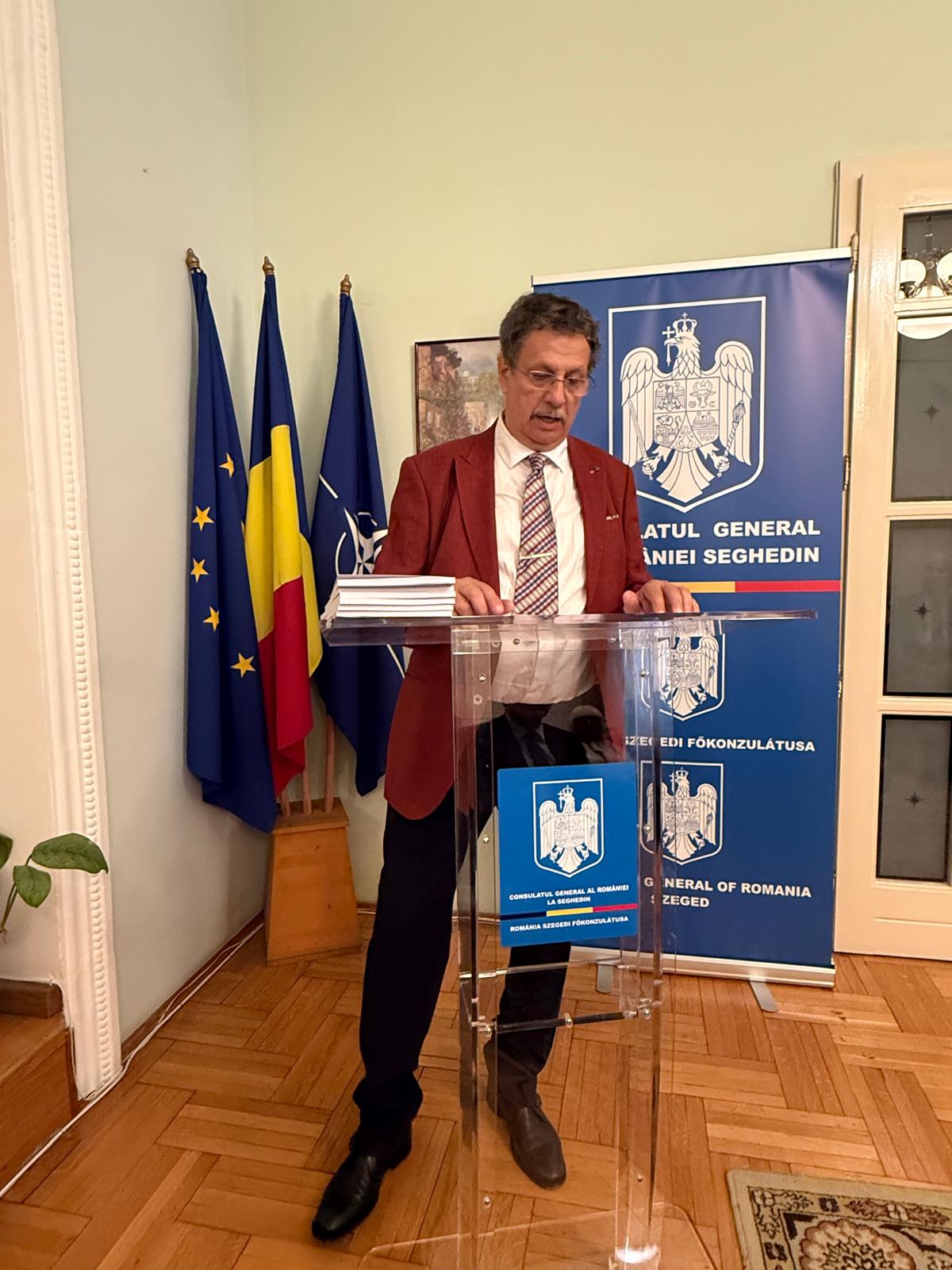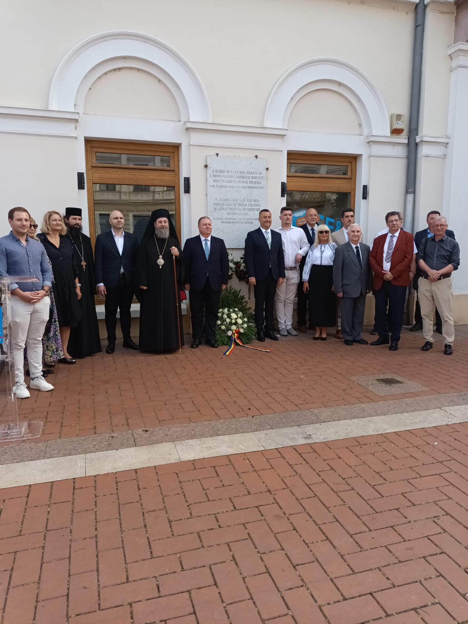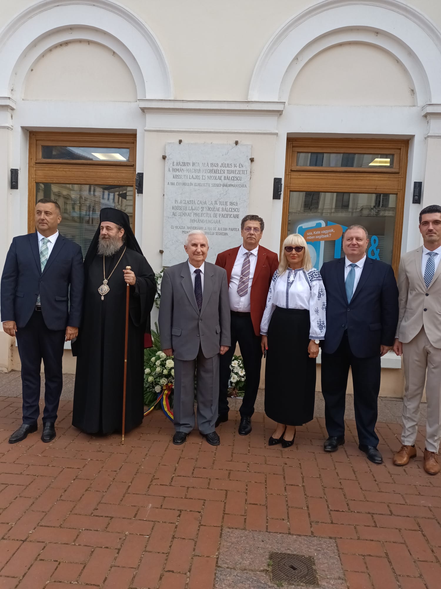 În cadrul ceremoniei, au adresat cuvinte de salut Jozsef Binszki, viceprimarul Seghedinului şi Florin-Trandafir Vasiloni, consulul general al României la Seghedin. Viceprimarul Seghedinului a subliniat grija Primăriei Seghedin pentru simbolurile minorităţilor care locuiesc în oraş, implicit cele importante pentru comunitatea românească, precum şi necesitatea continuării apropierii între Ungaria şi România. Consulul general Florin Vasiloni a vorbit despre importanţa marcării unui moment important din istoria relaţiei bilaterale dintre români şi maghiari.*