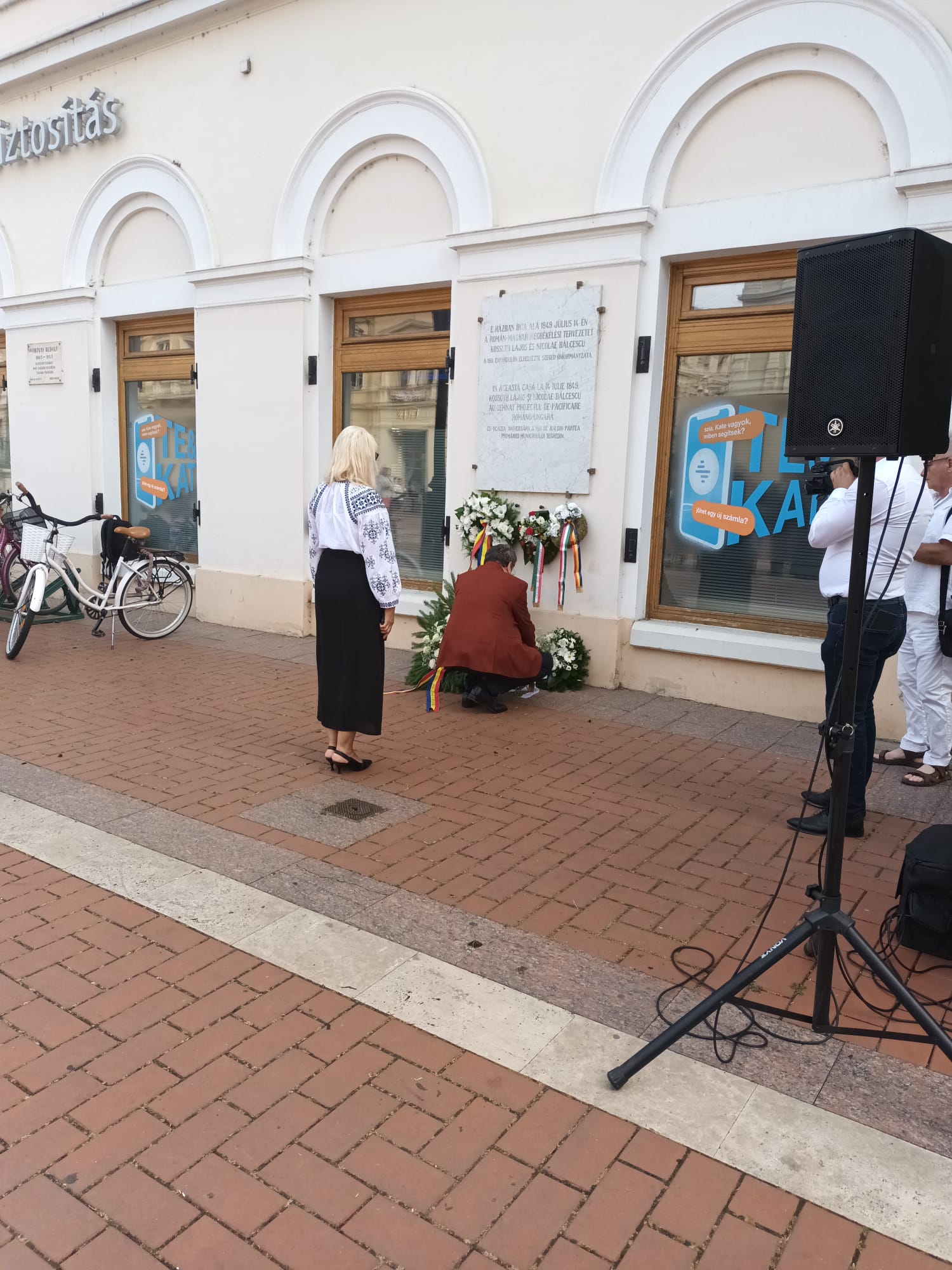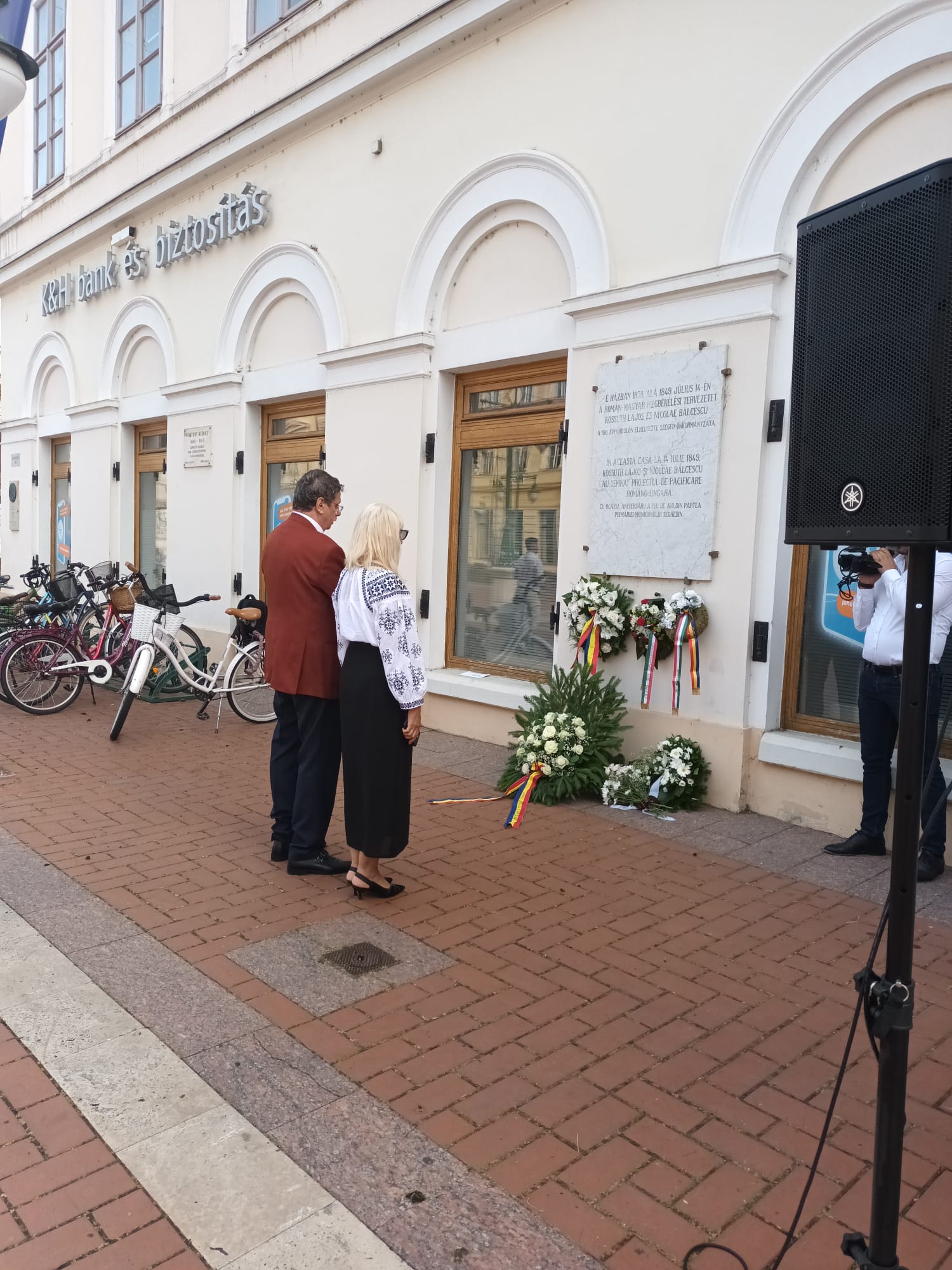 La placa comemorativă situată în Piaţa Klauzal din centrul municipiului Seghedin, al treilea oraş ca mărime a Ungariei, placă amplasată pe zidul clădirii, în care s-au întălnit Bălcescu şi Kosuth, a avut loc o ceremonie urmată de depunere de coroane de flori.