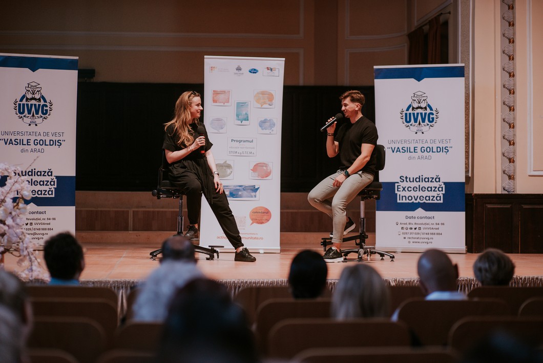 Într-un cadru deschis, amical, conf. univ. dr. Paul Albu și invitata sa, au purtat un dialog motivațional pentru tinerii prezenți în sală, dar și pentru cei care au urmărit evenimentul on-line. Au vorbit despre experiențele personale, despre schimbările din domeniu și despre cunoaștere, despre autodepășire.