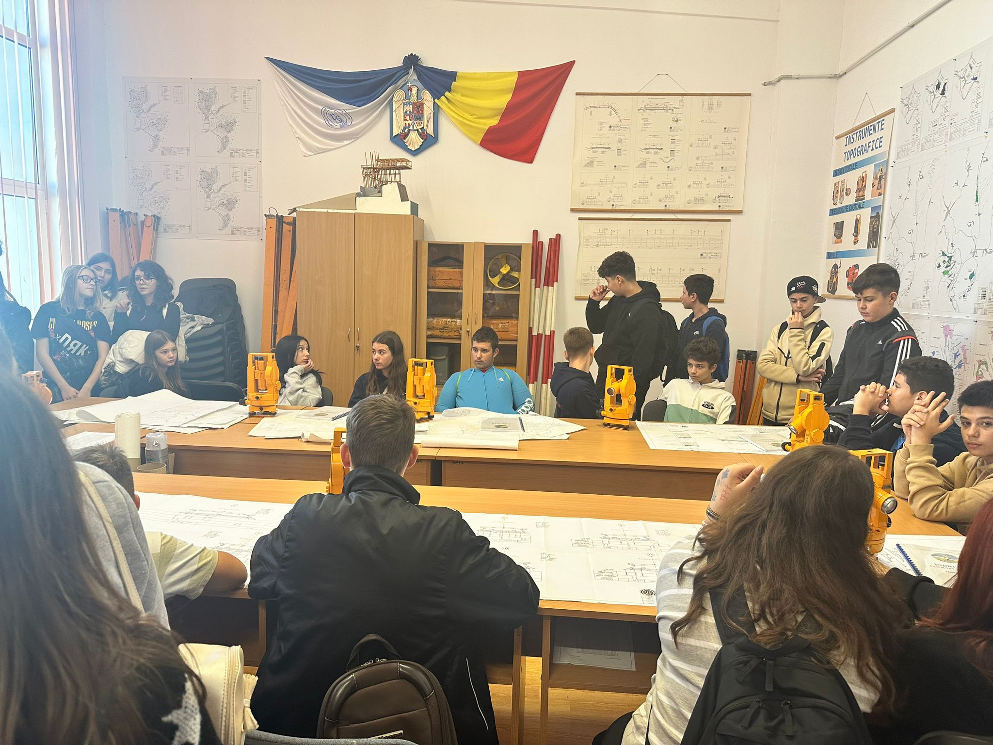 Ceilalți, înclinați spre latura practică, au participat la o activitate de topografie, utilizând cele mai moderne aparate: de la stații totale la echipamente GPS. După o scurtă demonstrație și câteva explicații, elevii interesați au efectuat ei înșiși măsurători cu aceste aparate.