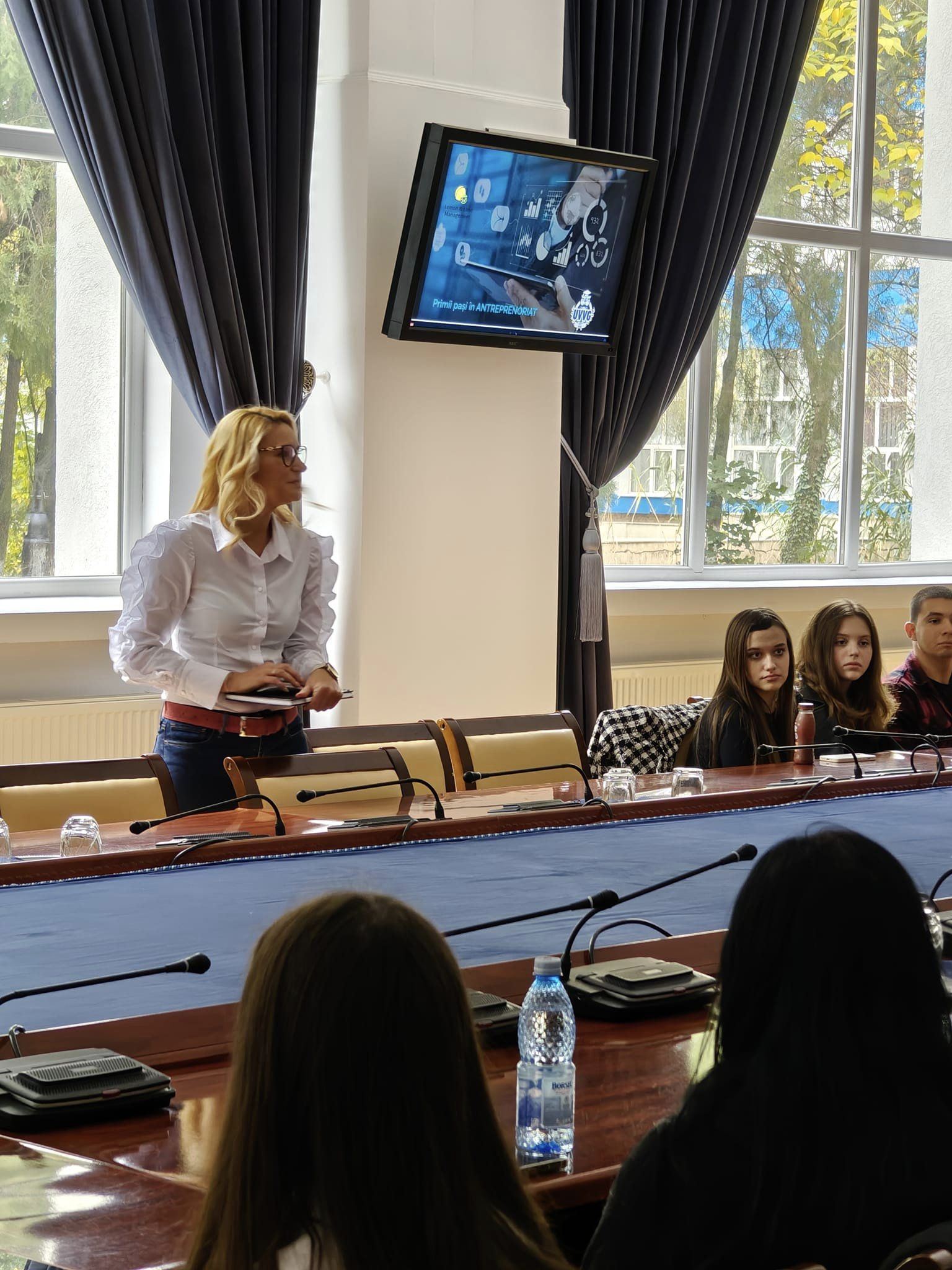 ”La inițiativa doamnei Rector, prof. univ. dr. habil. Coralia Adina Cotoraci, încă de anul trecut universitar, Universitatea de Vest „Vasile Goldiș” din Arad  a început o serie de workshop-uri desfășurate sub genericul „Antreprenor in Arad”. Astăzi ne-a onorat cu prezența și a împărtășit din experiența sa studenților, doamna Cristina Frangopol, manager, influencer și om de business activ în mediul antreprenorial arădean. Evenimentul de astăzi se încadrează în această serie, care se dorește a fi un exemplu de bună practică în consolidarea legăturilor dintre cunoaștere și dezvoltarea durabilă, printr-o sinergie între mediul academic și mediul de business din orașul și municipiul Arad ” a declarat conf.  univ. dr. Andrei Anghelina, prorector UVVG Arad.