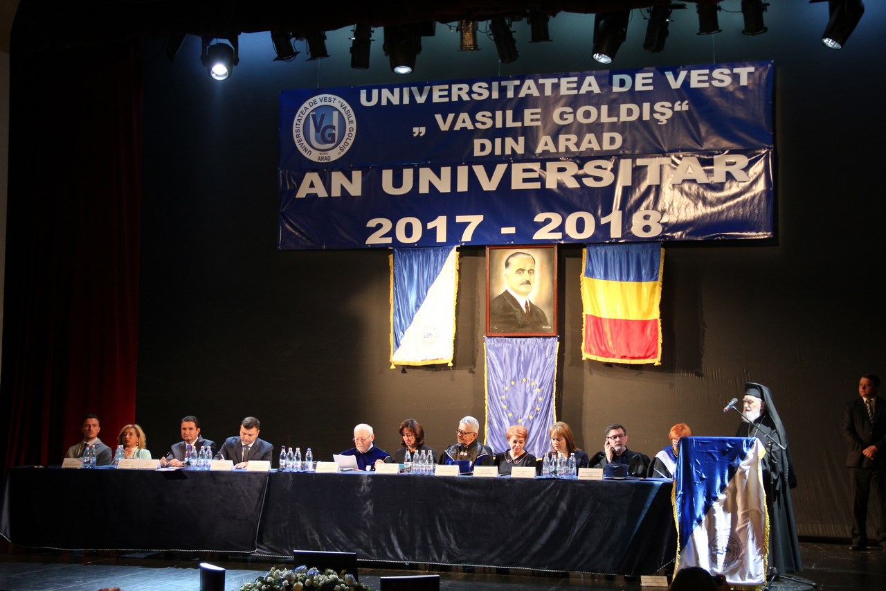 Prof. univ. dr. Aurel Ardelean, preşedintele UVVG, a subliniat faptul că, Universitatea de Vest „Vasile Goldiş” din Arad deschide „Noul An Universitar 2017-2018 cu bucuria reîntâlnirii cu Alma Mater Aradensis, în atmosfera academică a Universităţii, care împreună cu întreaga naţiune română va sărbători Centenarul Marii Uniri de la 1 Decembrie 1918”.