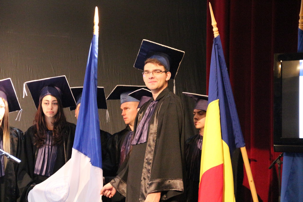 Un moment emoţionant a fost depunerea jurământului studenţilor, în faţa steagului UVVG, din anul I, în limba română, franceză şi engleză.