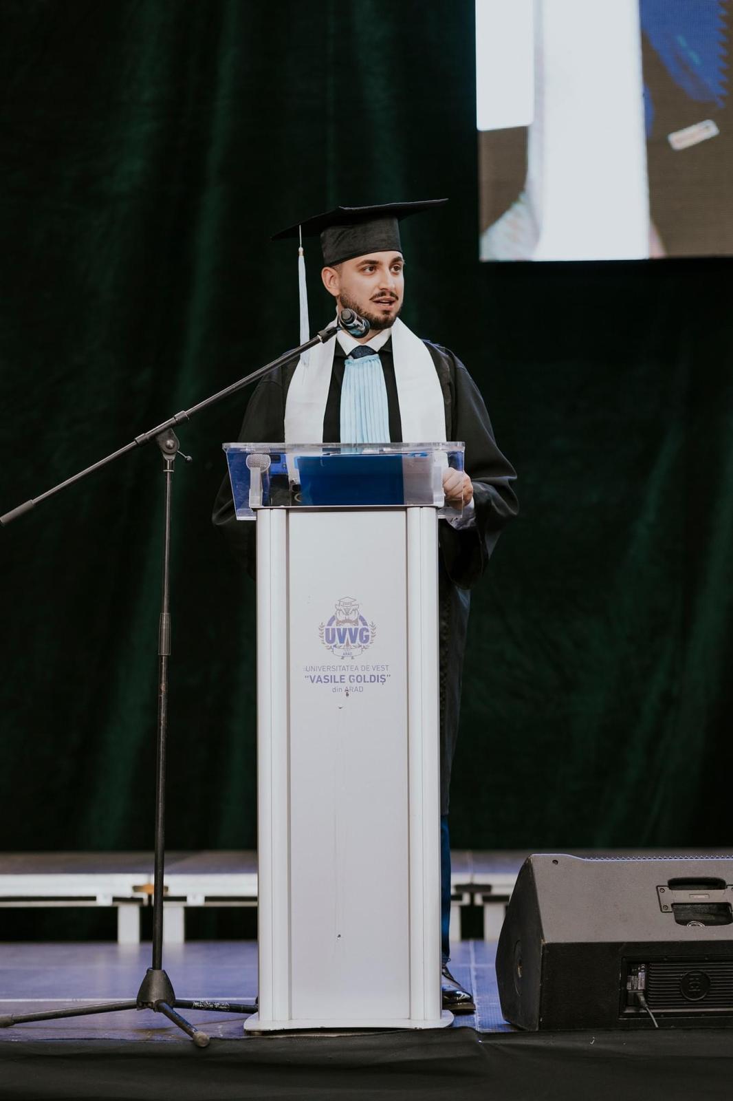 - Sunt absolvent de Medicină, cercetător și absolvent al mai multor programe universitare, inclusiv ale Universității de Vest „Vasile Goldiș” din Arad. M-am născut în Baia Mare, însă de la vârsta de 2 ani am crescut în Marea Britanie. La 20 de ani am absolvit Științele Biomedicale la Liverpool, apoi am studiat Medicina la UVVG, unde în prezent sunt masterand, studiind Medicină Socială și Management Sanitar. Am urmat cursuri postuniversitare la Harvard și în prezent activez în domeniul cercetării medicale internaționale, în cadrul Școlii Doctorale a Universității Semmelweis din Budapesta, în Centrul de Medicină Translațională.