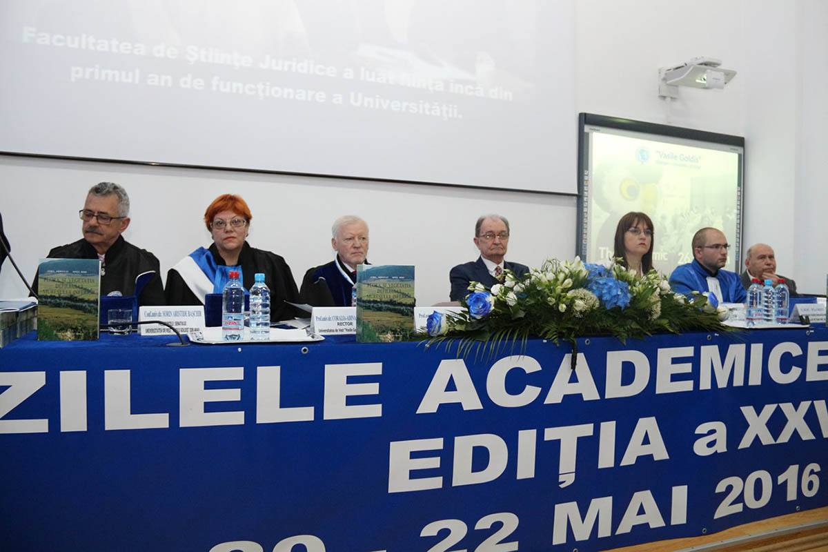 Universitatea de Vest „Vasile Goldiș” din Arad a organizat, în parteneriat cu Consiliul Județean Arad, Centrul Cultural Județean, Consiliul Județean Arad, Primăria Arad și Arhiepiscopia Aradului, în perioada 18-21 mai 2016, cea de-a XXVI – a ediție a Zilelor Academice Arădeane, promovată de UVVG încă de la înființare, în anul 1990, care au confirmat prin excelență lucrări științifice în conferințe internaționale.